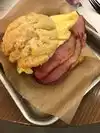 Diverse menu so that you can purchase breakfast or lunch anytime. We ordered the chicken sliders with waffle fries, the biscuit sandwich with egg, ham, bacon, and cheese. Also, indulged with the cinnamon roll and a brown sugar drop donut. Food is very good. This is our second trip here. Staff is super friendly.