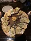 I'd never heard of soshito peppers. I thought it's Happy hour, if they burn my mouth out I'll just have two more margaritas! They were either pan cooked or broiled with oil till they softened. No char. They are two to three inches long and green and thin. Just like serranos but next to no heat, They were nice. Just pick 'em up We ordered Moscow Mules as well. The Hummus duo and bread was a good side to the peppers. The drinks were well made and fair at Happy hour. The patio deck is inviting and the inside wood work slats are attractive. We would certainly go back when back in Austin.