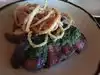 This restaurant was so yummy. It's in a shopping center. Once you step inside, you don't realize that it's in the middle of shopping. The decor is great! It's not a very large space. Every table was full. The appetizers were just as delicious as the main course. Will definitely go back. My husband had the lamb chops and thought they were really good. My friend and I shared a ribeye. YUM! We had roasted cauliflower and brussel sprouts as our sides. As well as cheese mashed potatoes.
