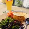I always have the fish tacos to get started. If you are a sushi fan, you will love them! My favorites are the lobster pho and the steak and egg. The pho is large and the lobster is tasty. The steak is a wonderfully spiced beef with tomato rice. My coconut mojito is served in a coconut. The Good Morning Vietnam is a great twist on a Bloody Mary. Save room for dessert and get the coconut ice cream. It is served in a young coconut and topped with chopped peanuts.