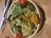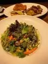 Stopped here after reading a few reviews and so glad I did! There were plenty of fresh choices. I chose the tangled noodle salad with tofu. The tofu was crispy and the peanut dressing was tangy and savory. Everything else in the salad was also super fresh. I just know I’ll be craving this salad for awhile. The service was also efficient and super friendly. They seemed very concerned with any potential allergies and had an open kitchen to the dining room that appeared very clean.