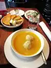 Ate here for lunch. Packed, no tables but sat at Bar. Great atmosphere, bar wait staff A+, very attentive. A bit noisy, but tolerable. I had the butternut squash soup of the day, my husband had the Bernie Sandwich with fries. Fries were meh, sandwich was amazing, soup was superb. No complaints, other than the fries didn’t seem very fresh.
