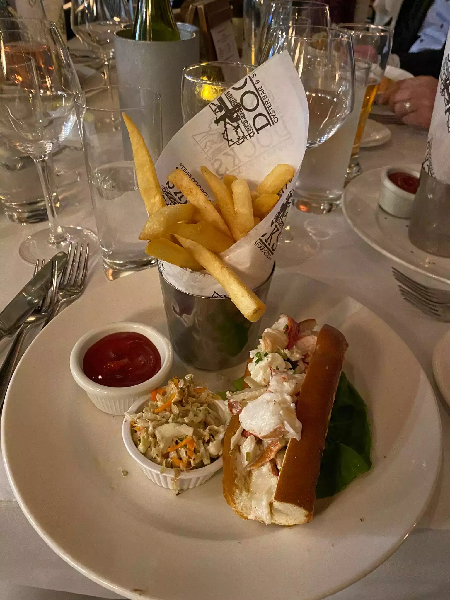 Here with a group. I had the lobster roll which was excellent. Lots of chunks of fresh lobster served with equally excellent fries. Everyone in the group enjoyed what they ordered. The service was excellent.