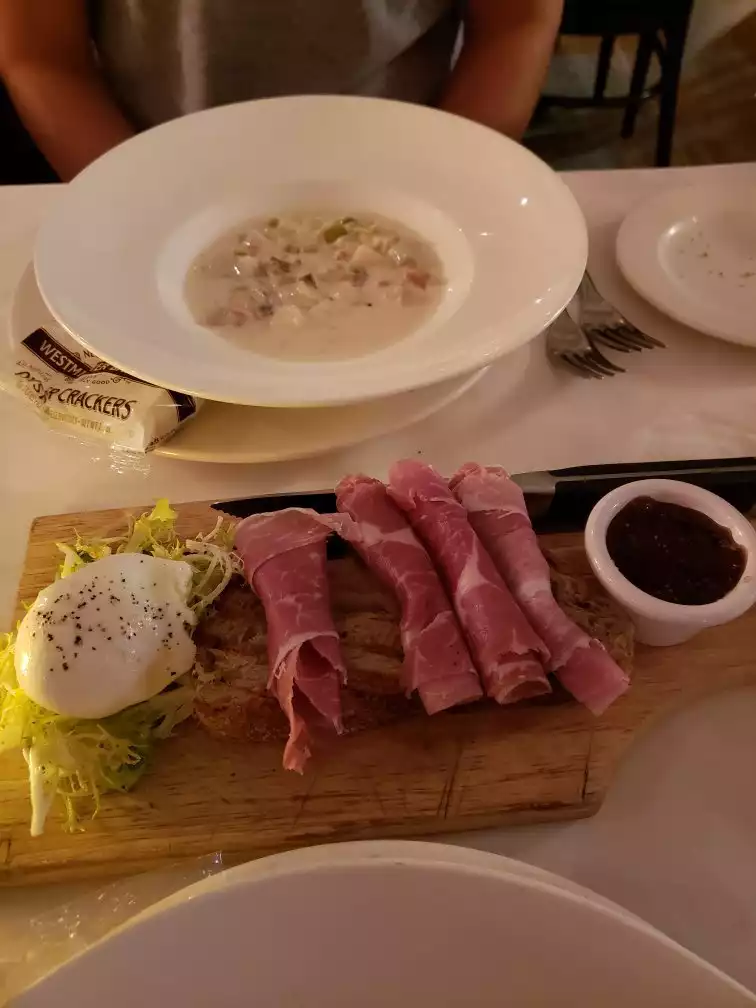 Food was tasty but portions on the smaller side. Server could not have been nicer. I ordered clam chowder with popover- they brought a huge soup bowl, then poured in a small cup of soup. Popover never appeared- they sometimes do not serve it even though it’s on the menu. Tuna tartar tiny but tasty. Nice Cobb salads, good clam sauce but again pricy for the size. Key lime pie just ok.