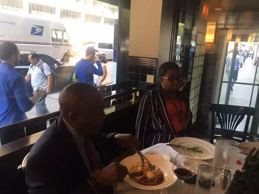 Definitely NYC service and prices. My Maryland crab cakes were superb. They come in just behind THE best I ever had (at a Pacific Oceanside restaurant)! Husband’s jumbo shrimp excellent and beautifully plated. Servings were generous. Wine was good. Coffee also excellent. Perfect location for us since we had appointments at the Swiss Consulate in the same building.