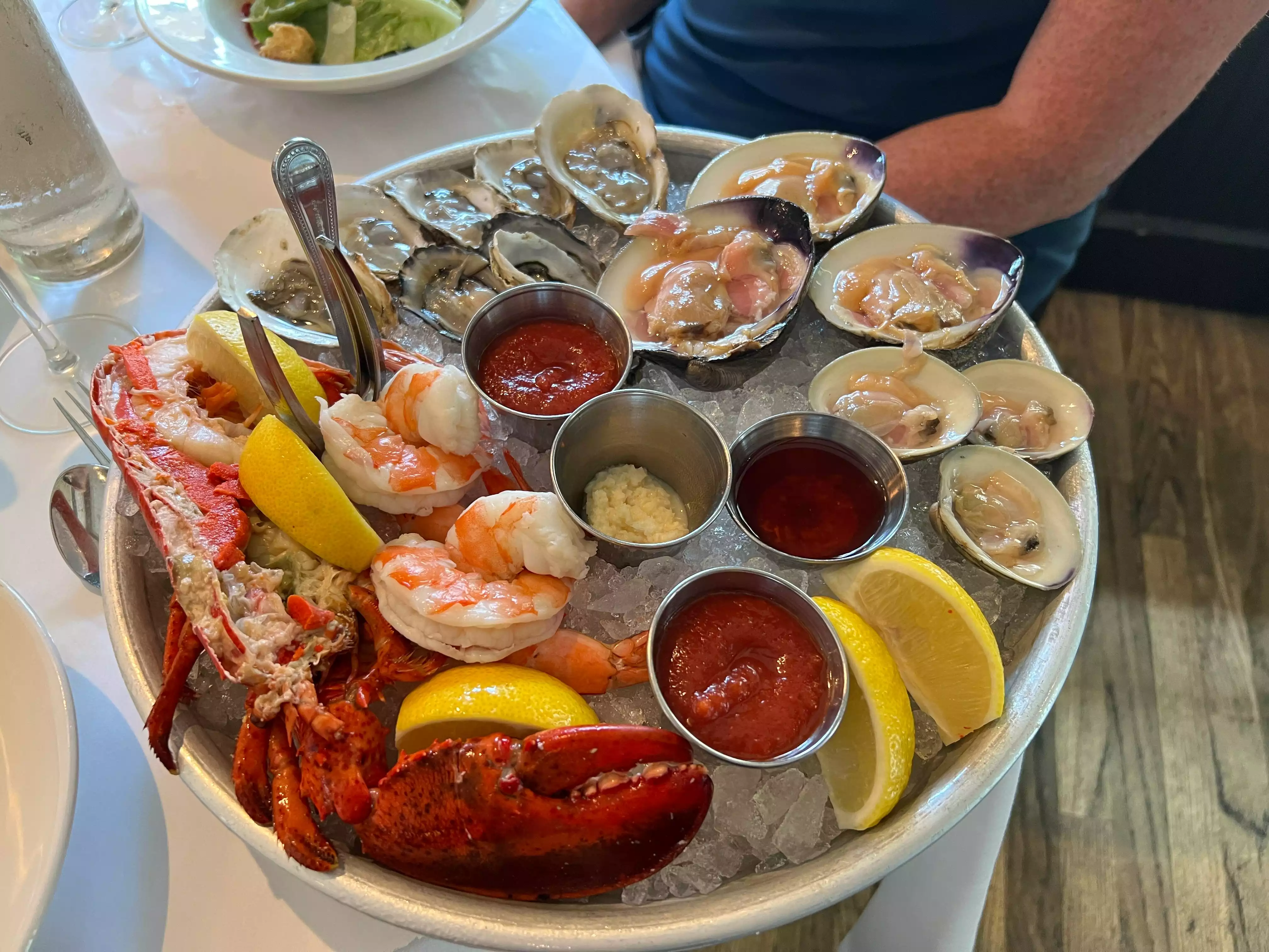 The highlight of our meal was the oyster selections they had on this day. Mouth watering is the best way to describe it. That alone would have gave this place a 5 Star rating. Then our dinner came, Two of us ordered the Lobster bake special they had ($50 plus) each. They had a lot of food; but the lobster was room temperature and the muscles and clams were cold. I’m not talking been sitting out a while; I’m taking sitting out all day cold; but the potato and the corn were hot. Very disappointing end to night because I would recommend this place if only for their oyster selections.