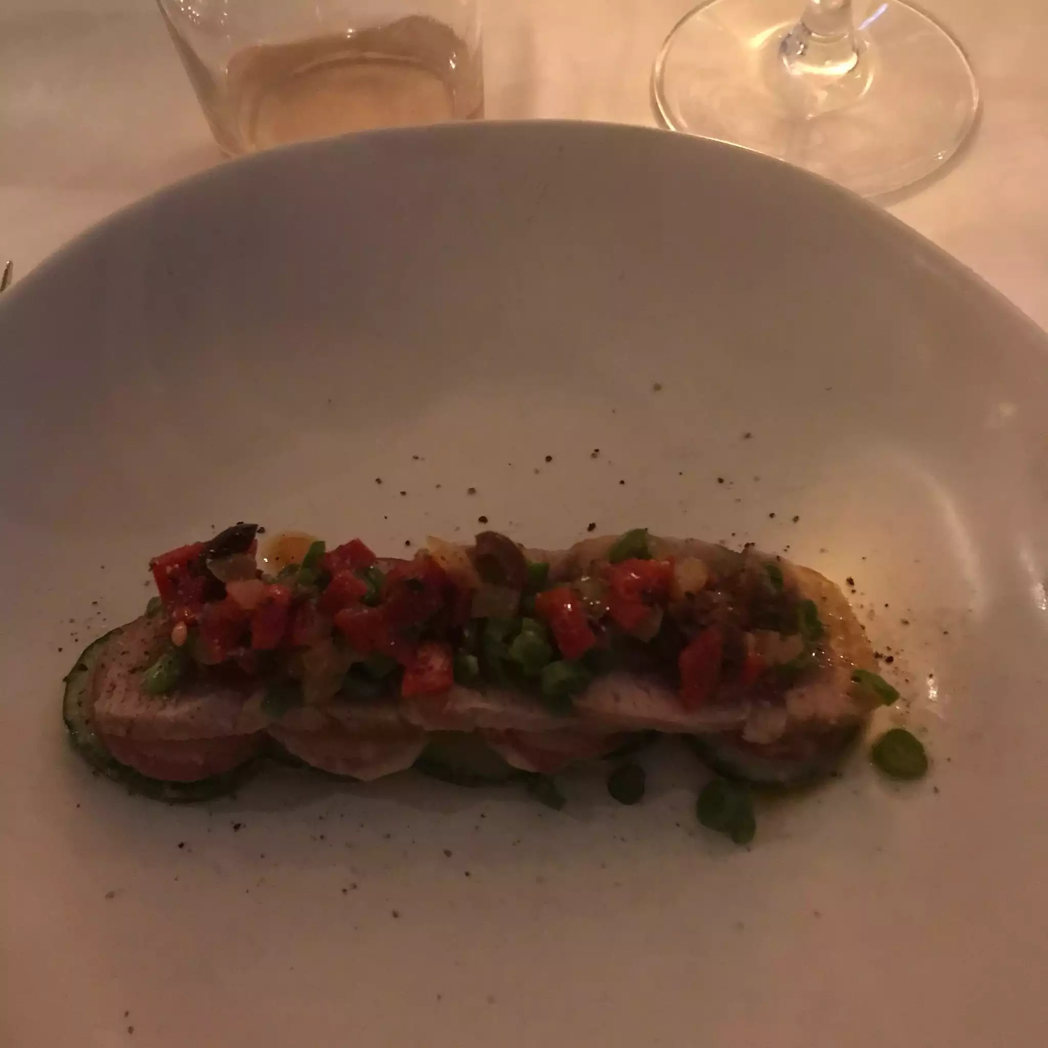 Has a nice dinner (med sea-bass) and enjoyed a qualitative glass of sauvignon blanc from NZ. Service was ok but in my eyes very transactional and not personalized. However, they were efficient and very quick.