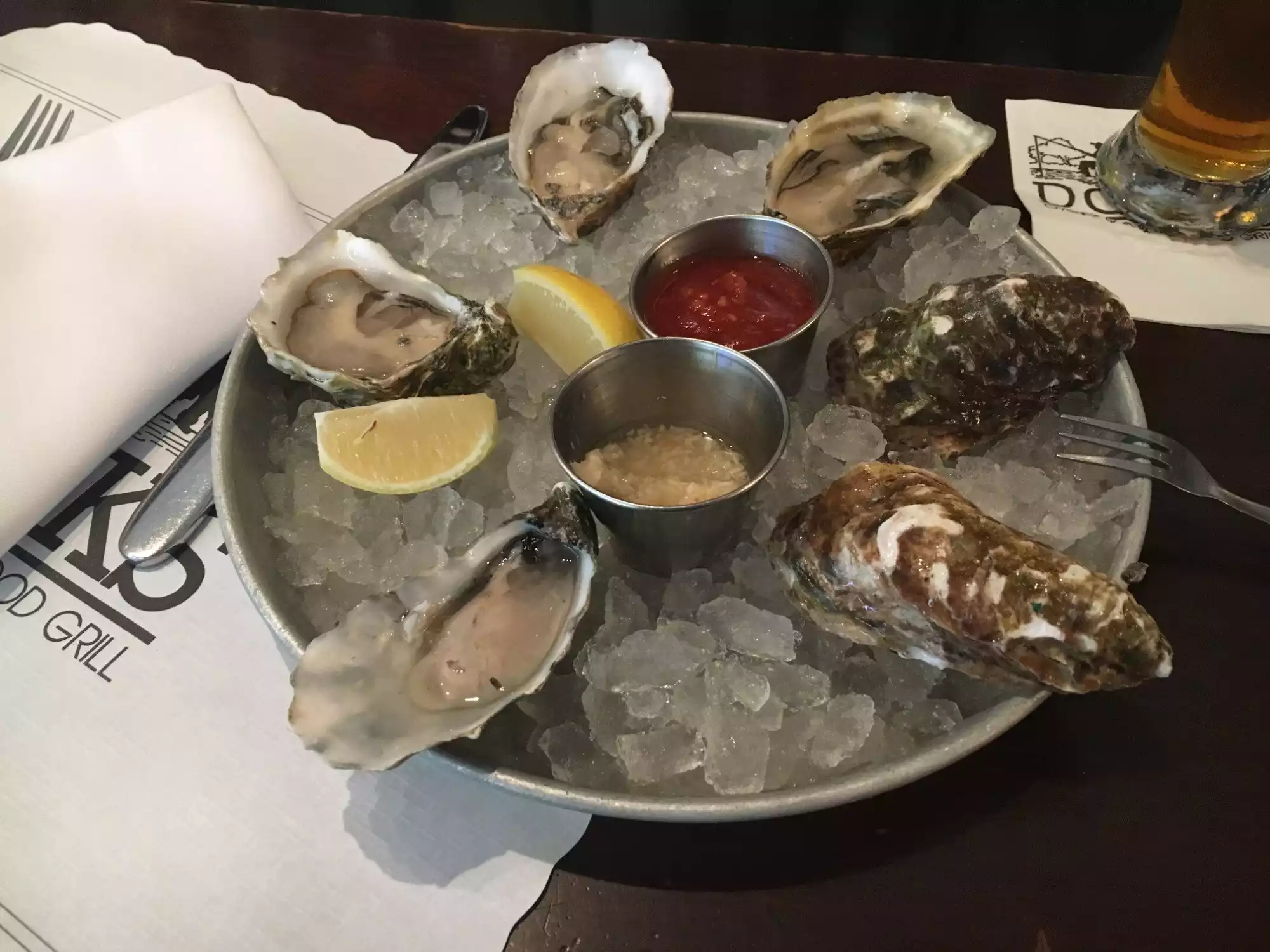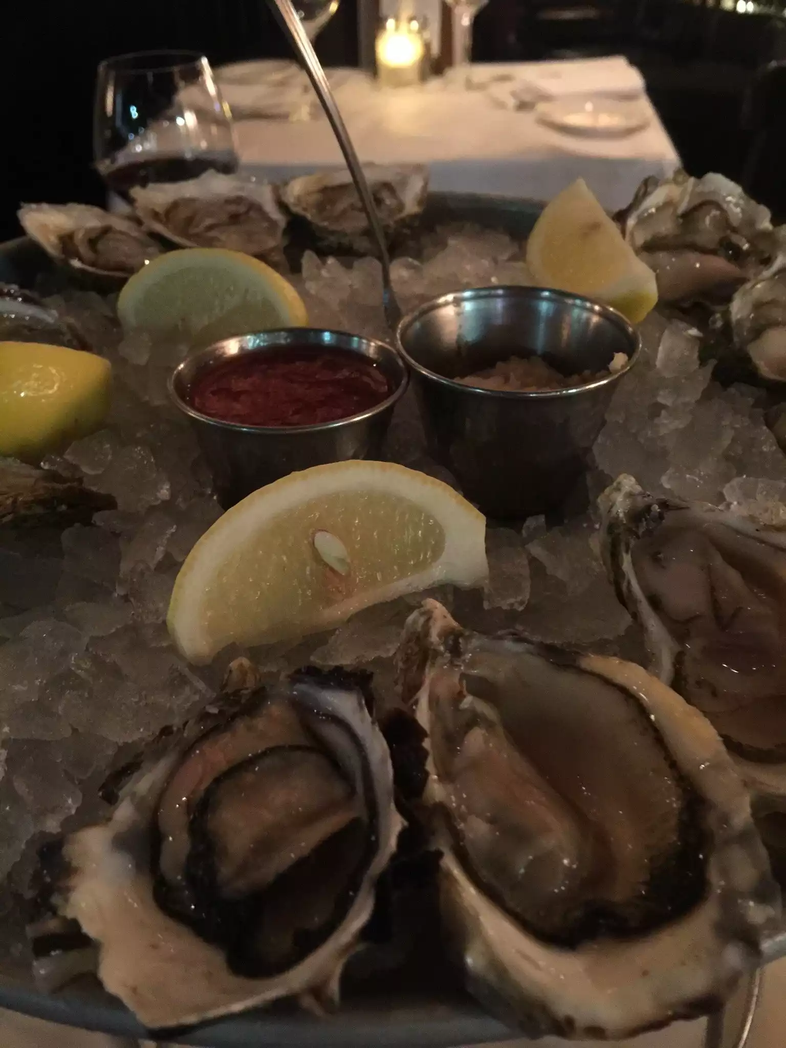 Had raw oysters. Some were off, fishy. Some had shell chips in them. Martini was generous, the saving grace here. Nice place. Your first warning sign is the rickety revolving door... it doesn’t add up to the nice interior design and atmosphere. I went early afternoon, so maybe their shucker was inexperienced at shucking and judging a good oyster worth serving. Nice selection of oysters but Disappointed with the unappealing ones served.