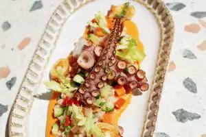 Although we booked a table in advance when we arrived we were looked at as if we had 2 heads each for some reason. When our table was ready we were shown to a table in a high traffic area. We saw an open table in a quieter part of the restaurant and we were able to see there was no reserve sign on it but when we asked if we could sit there instead, all we got was a ‘’no’’. We started with the beef carpaccio and octopus as a starter. The octopus was really good our daughter wanted more so we ordered a second helping. The beef carpaccio was okay. Wish it has some Parmesan flakes over it and a bit seasoning as it was a bit bland. I had the rosemary chicken which was really good. A nice flavor on the well cooked skin of the chicken. Wife had that Branzini which she thoroughly enjoyed too and our daughter had a salad. The octopus was really good and that is what made the meal for us. Just wish the staff can be a bit more less ‘snooty’ an be more welcoming to guests.