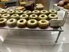 So we loved that they stayed open late in comparison to several cafes and restaurants. We tried the cronut 10/10 super delicious. For the cookie shot machine I have mixed feelings It has a QR code in a big sign, you scan and order/pay for as many shots you want. The experience would be great if someone was managing the line or if they had an order number or shot number. We waited for our turn and then when we were ordering, 2 other random rude people scanned and ordered several shots. We did not continue because even them were confused on whose shots were whose and there is no way of knowing how many each ordered or whose order the machine is doing. We returned after dinner and one of us covered the sign so we could order in peace in our turn. The cookie shot is a soft chewy chocolate chip cookie with an inside layer of chocolate. The milk is cold, sweet tasting and delicious and I really wished they sold it as a normal drink at their counter because I wanted more to finish my cookie.