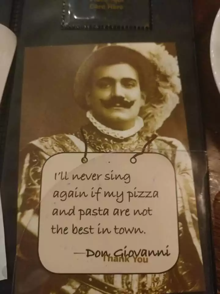 From street it didn’t look very appealing. But we stopped to read the menu they had setup outside. They had some cheap railing setup for no reason surrounding the menu like it was in some high security menu jail. As we were reading it a staff member ran out with an attitude telling us not to touch the railing because it’s not bolted down. It was almost like an Italian version of pranked. I felt setup. When I realized he was serous, and this railing meant everything to him. I vowed Don Giavani and all his staff would never see a green back from this American.