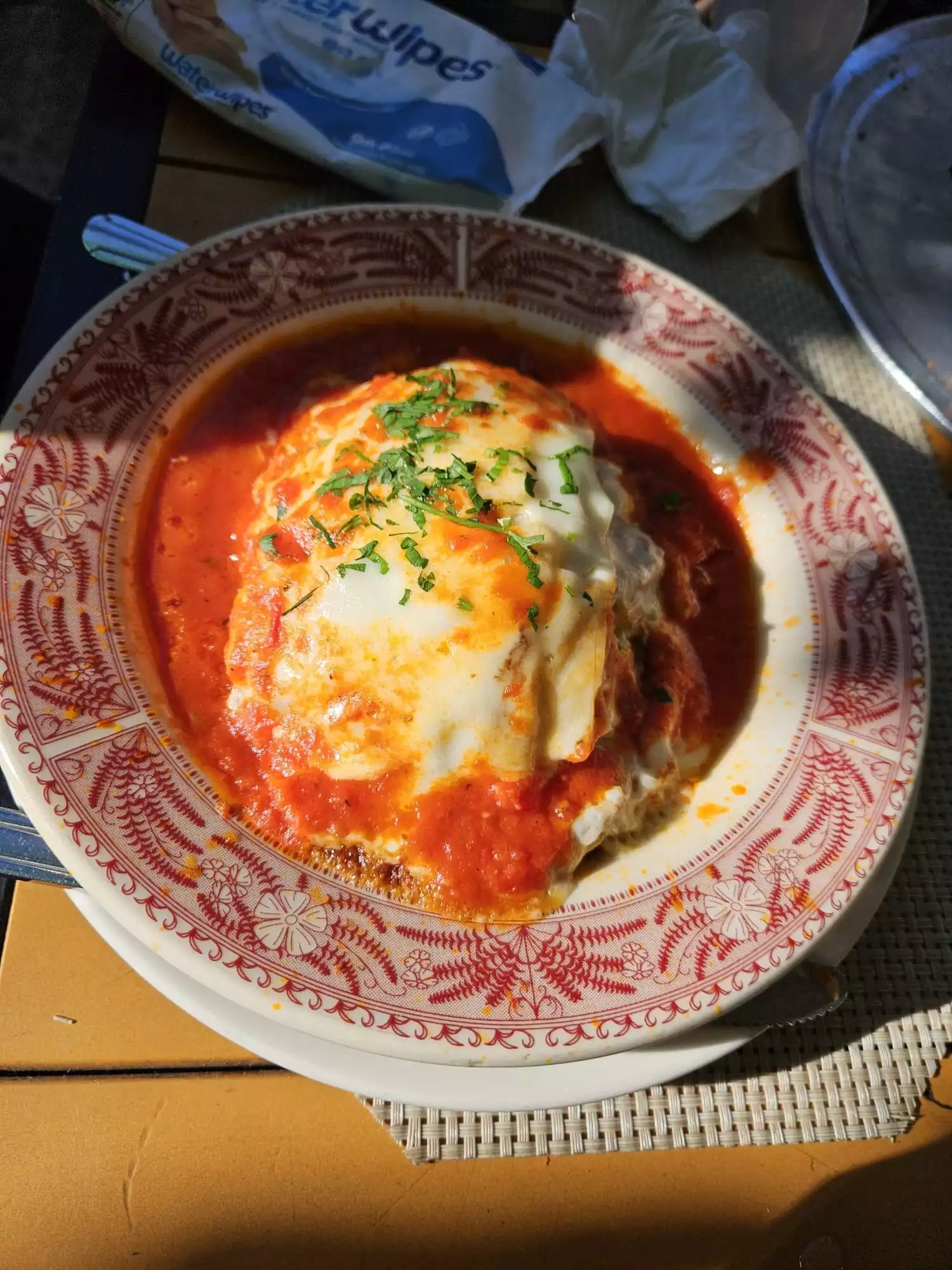 I went with my boyfriend and his parents after looking for somewhere to eat in the area after a long day of sightseeing. For starters we ordered one portion of cheese garlic bread and one portion of bruschetta to share. Brushetta was ok but was very strong of raw garlic and the cheese bread was mediocre, cheese was stringy but tasteless. Bf had seafood pasta as main and said it was over cooked and plain, basic tomato sauce ($25), I had lasagna at $20 as did bfs father, it was a good portion, hot and tasted ok but it wasn’t authentic, lots of feta and very minimal meat, not worth $20. His mother had a special, chicken and avo but it came without the avo which she was not aware of at the time of ordering and the chicken was the thinest piece I have ever seen and looked so plain and dry, it only came with sliced tomatoes - it was a sorry looking place , her food was also stone cold so we sent it back and that meal was taken off our bill. In all for 2 starters, 3 mains, half a carafe of house white wine and 3 beers the total came to $140. For the price they are charging I wouldnt return, service was slow and they made no apologies for the poor excuse of the ‘special’ meal that arrived.