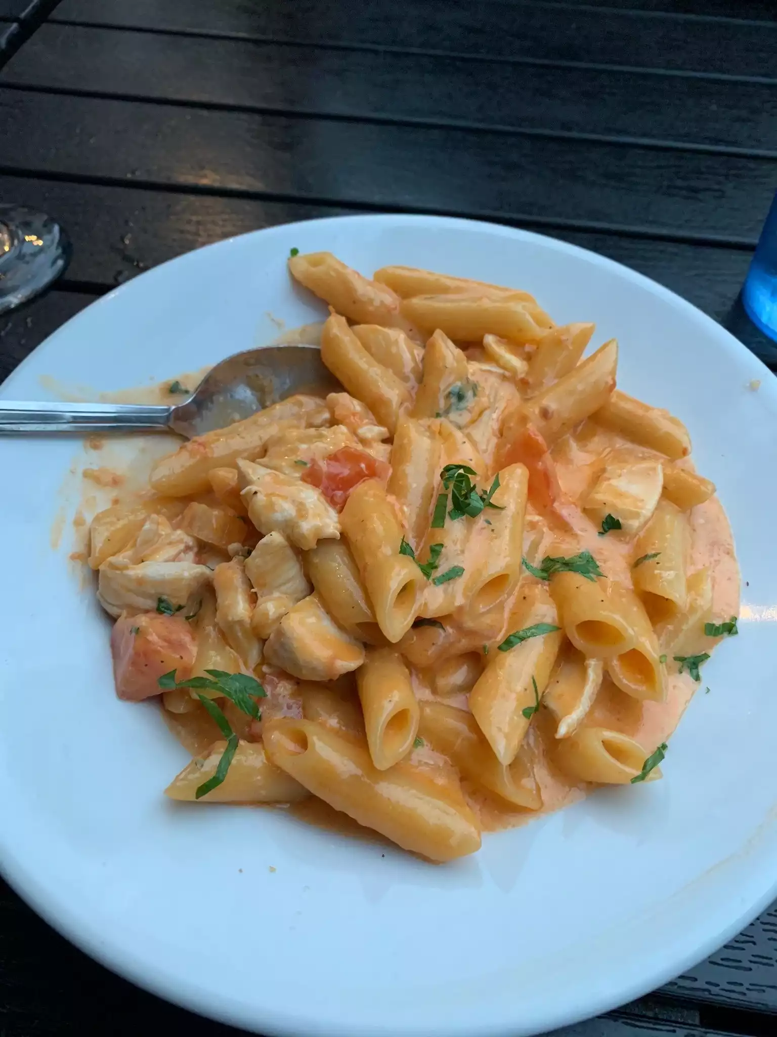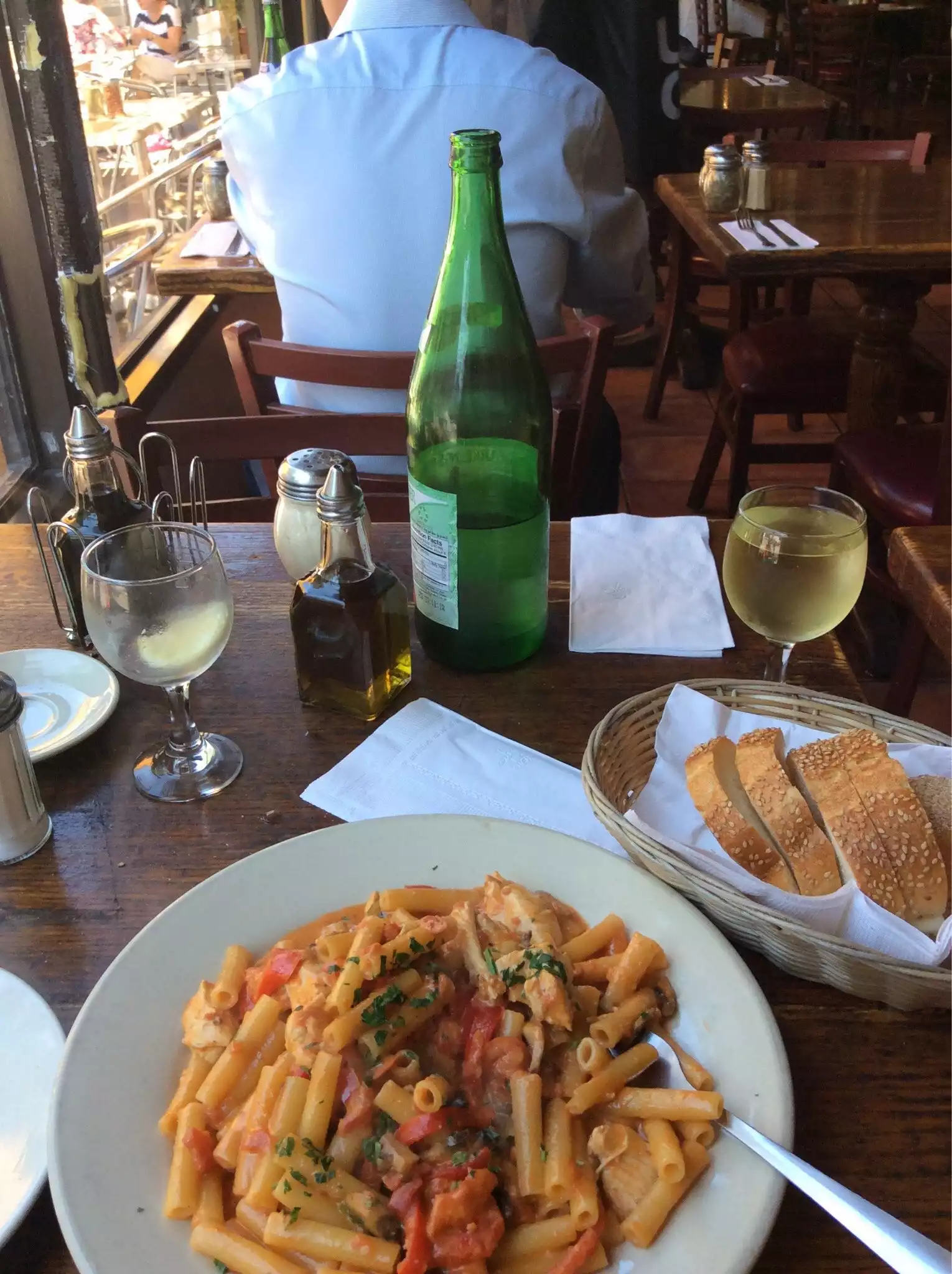Wonderful pasta. Good glass of wine and good service. We stayed on the deck and it was delightful. A restaurant find!!