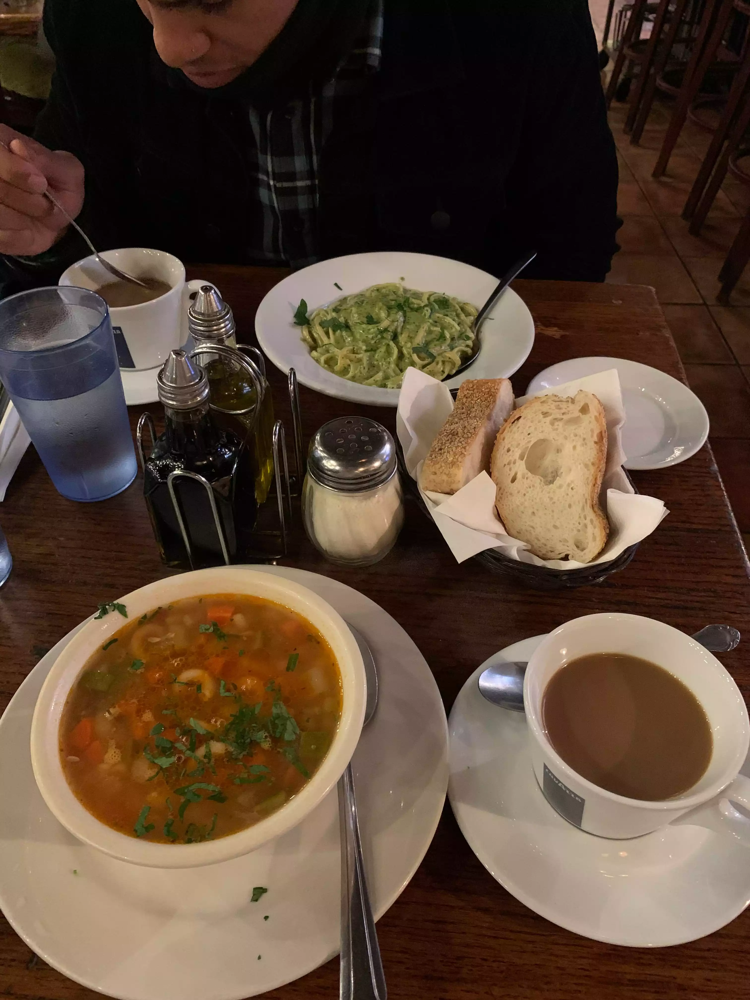 In a rush to get to a show with friends walked in and took our chances. Sat right away. Bread and water came immediately. Everyone at the table had something different and all were impressed. My Bolognese was soooooooooo good, could not even finish. Another dish was white clam sauce and they to were loving it. All there pasta's are homemade. Service was great.