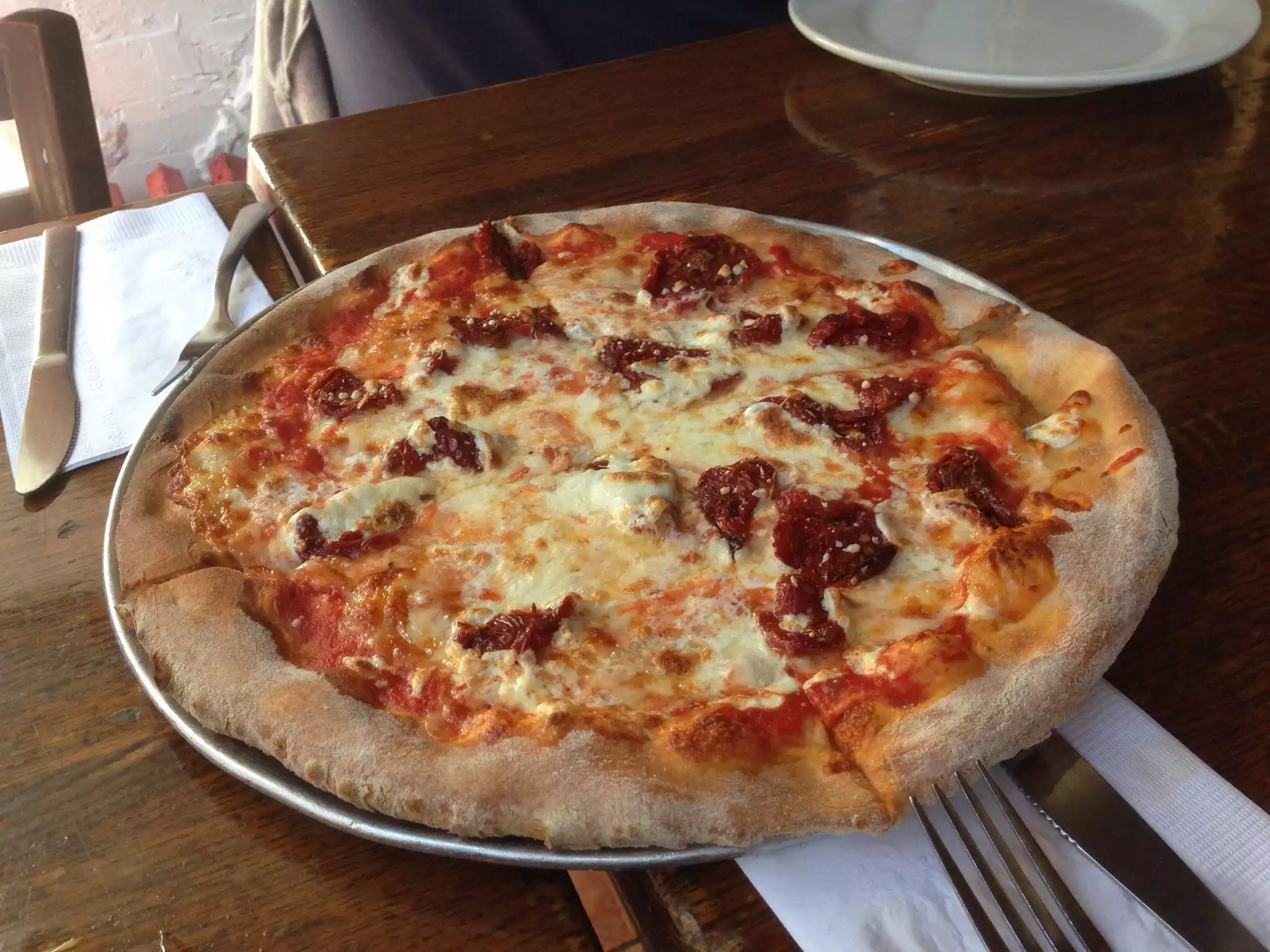 This is a nice little place. We were seated promptly - sat on the patio outside. We ordered the pizza - one pepperoni, one with chicken, sun dried tomatoes, spinach and mozzarella - it arrived in short order, piping hot and very tasty. Unless you're big eaters, two people can split one small pizza and feel like they've had a good meal. Recommended. Would go there again.