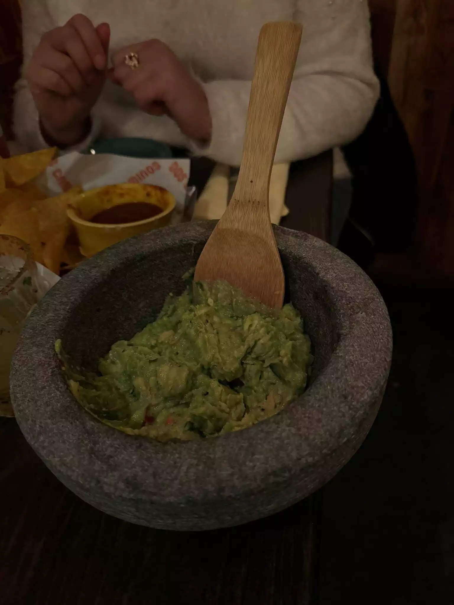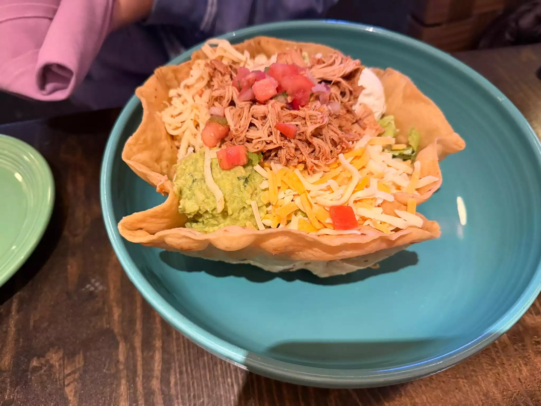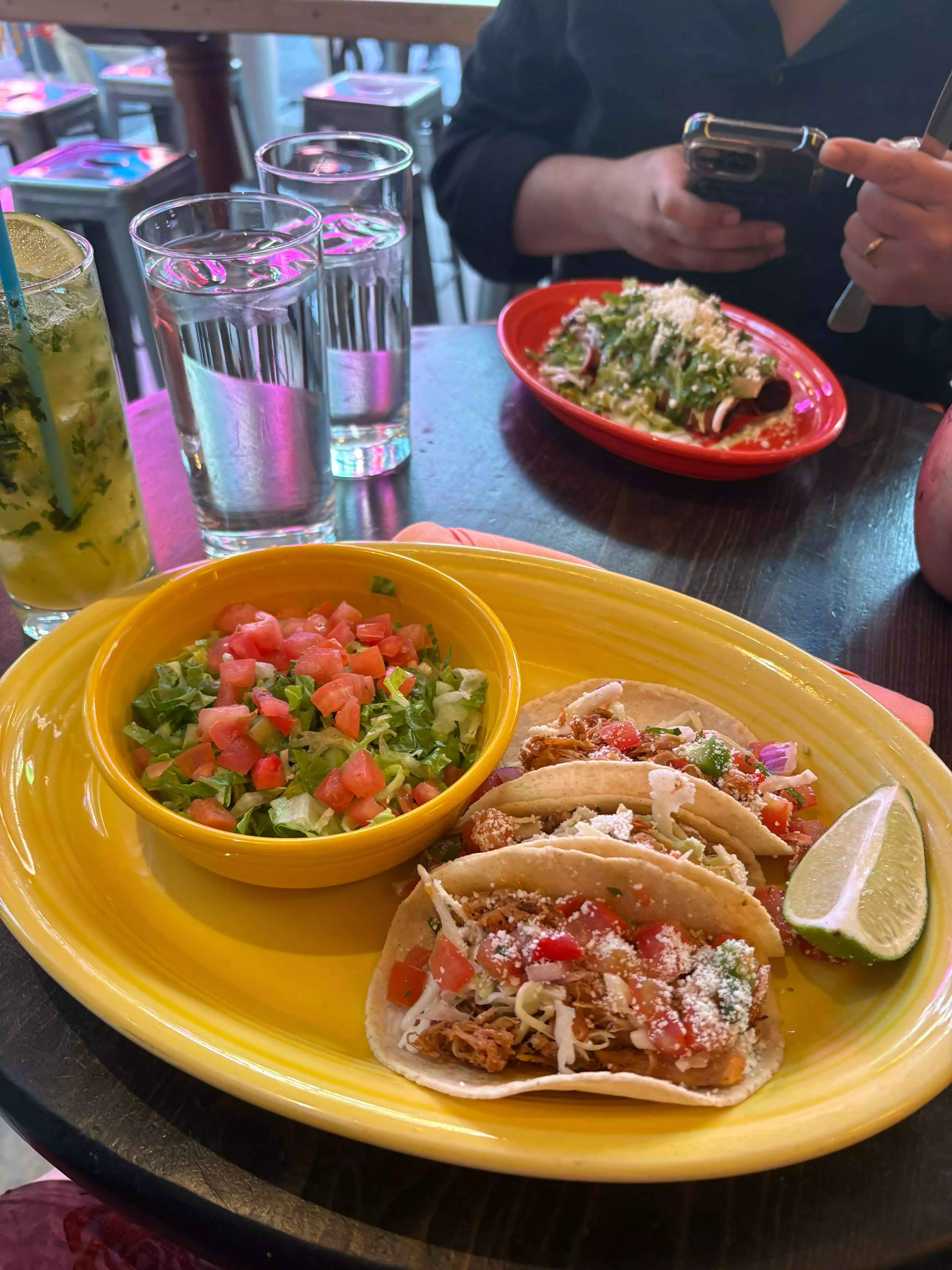 Everyone enjoyed their food! We started with chips, guacamole, and salsa. Guacamole was fresh and tasty. I got the taco salad (pretty big just FYI) others got tacos and enchiladas. Our waitress, Sabil, was so friendly and attentive. As a group of friends who live/lived/or visit NYC often, we were skeptical about eating somewhere in Time Square, but we were happy with our choice. We went at 7pm on a Friday night and were seated right away. I also loved my spicy cucumber margarita!