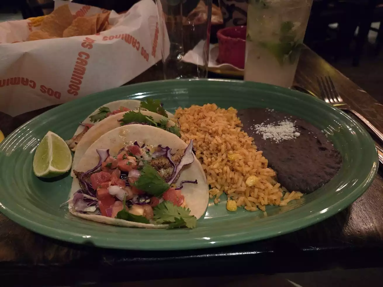Great food! Our server Jamie gave us perfect recommendations for our dinner. The carne asada was tender and flavorful. Highly recommend Dos Camino and Jamie was so sweet and attentive to allergy concerns.