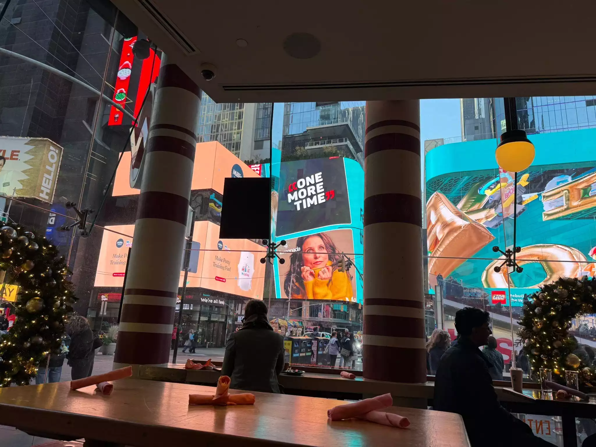 The quality of food was excellent, but the service was even better with Jamie. We would recommend going to the bar area and asking for Jamie. The view as you’re eating is of Times Square highly interesting and entertaining.