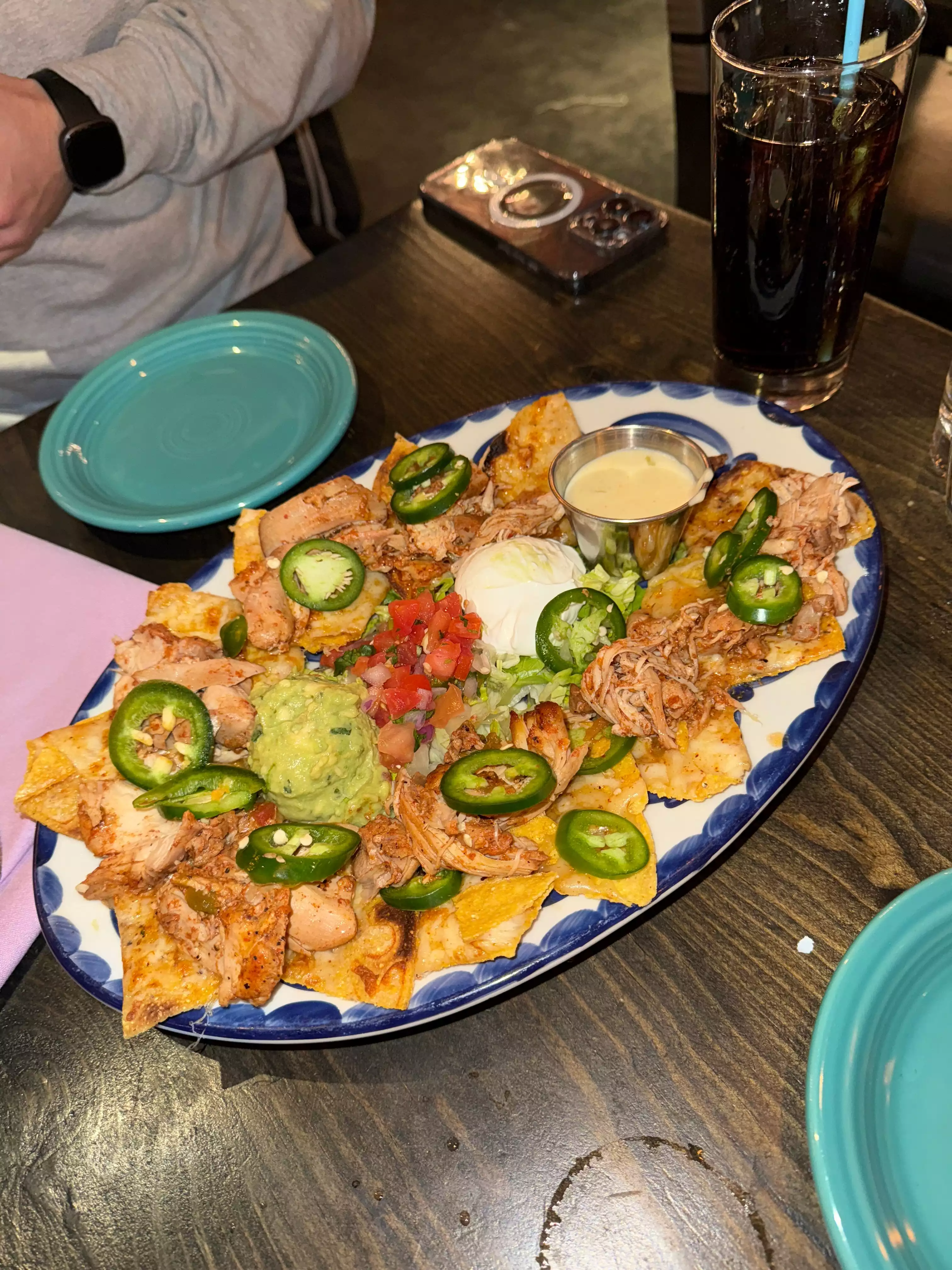 Super nice Mexican restaurant, well decorated as in Mexico. Plate of Nachos ($22) was big for both of us so we just had a great big and hearty Tortilla meal soup with chicken in it ($16)