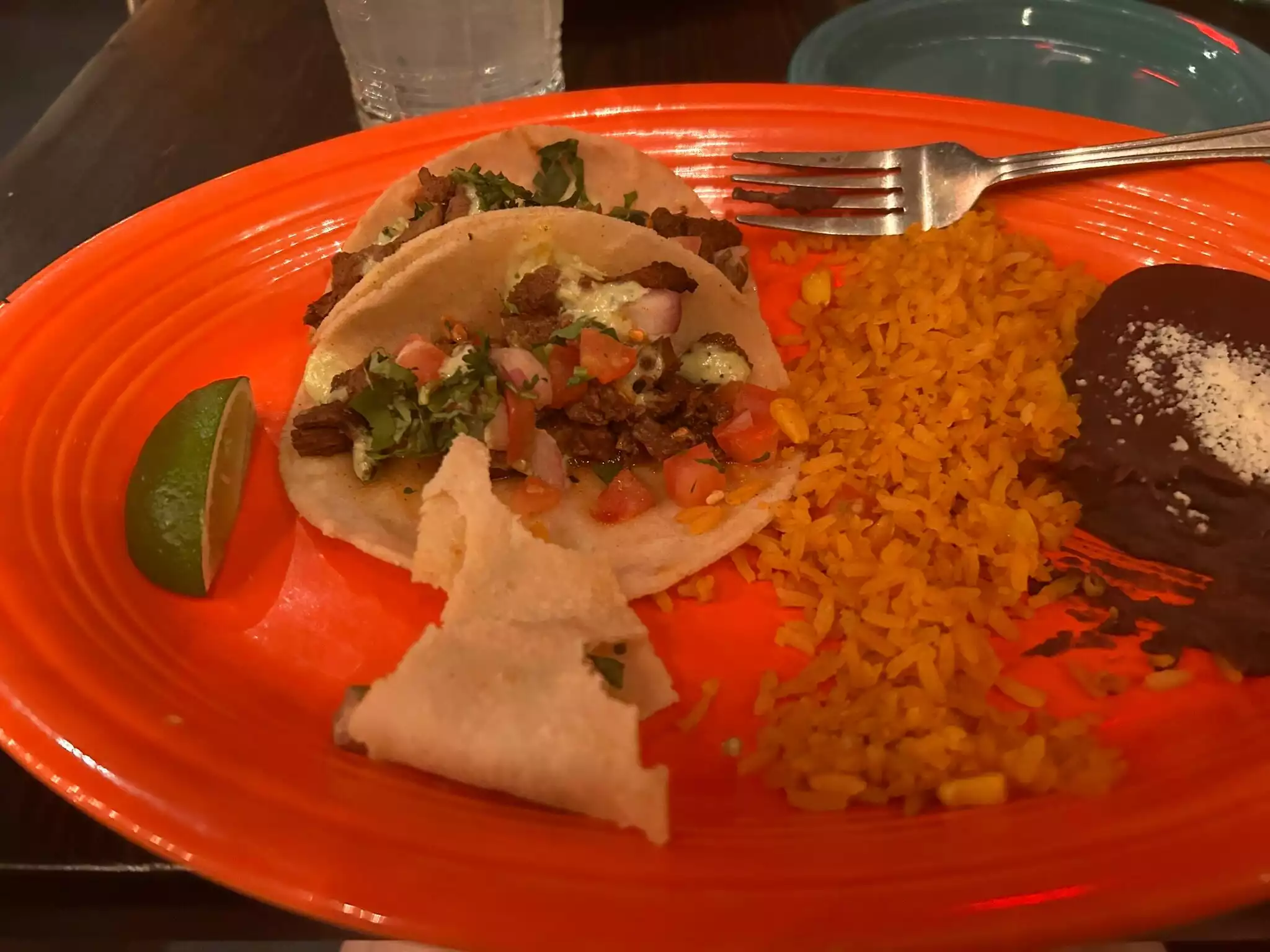 I came here for dinner before a show. I was surprised to find out that they charge for chips & salsa - as a Texan, these are free at pretty much every Mexican/TexMex table service restaurant so I skipped the extra cost. I ordered the beef fajitas and flavor-wise, they were fine but nothing special. There was a fair amount of fat/gristle in the meat as well. My waiter was prompt and nice. I’d rather walk a few blocks for the fantastic tacos at Los Tacos No. 1, but I would eat here again if someone else wanted to.