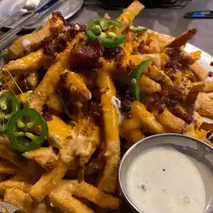 We stopped in here for a drink and a bite last weekend and we were pleasantly surprised by the space. Beautiful and spacious courtyard, plenty of TVs and a great selection of beer. The Loaded Fries were an instant hit. Our server was beyond friendly, even when everyone ducked inside during a quick rain storm! That would annoy most staff, but she was great and accommodating when we ran back out once the rain stopped and picked up right where we left off. I would absolutely go back here again!