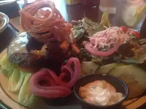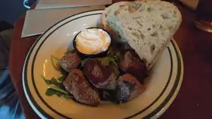I ate dinner and had drinks at the bar. The candied bacon burger was delicious. I had a side salad and I always appreciate a place with good dressing. The service was great. But the decor and the vibe of this place is worth visiting. Wonderful patio. Funky bathroom decor (clean!). Just enjoyed my visit.