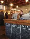 I am a "pizza addict" and this pizza was one of the finest pizzas that I have had the pleasure to enjoy. The menu items include toppings of roasted eggplant, fresh sweet corn, Eden feta, dry cured olives, marinated roasted tomatoes, cashew cheese, smoked tomatoes, herbed tofu ricotta, roasted red peppers, house made fennel sausage, as well as some more traditional toppings. The crust was corn meal which perfectly complimented the sauces and toppings. We ordered the "chef's choice" which is a selection of six different slice combinations chosen by the chef. Our six selections were over the moon with taste combinations that I have never experienced before. The friendly and helpful staff assisted in our selections of wonderful salads. We enjoyed eating at the outside area, especially since we could avoid the queue for inside dining.