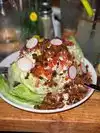 Our first night in SA. Great recommendation from our friends. Our server, Hannah, was on top of everything. Portions were outrageously big. $5 for a wedge salad which was a whole head of lettuce and delicious. Wife had the Reuben which was very good. I had strip steak with chimichuri. Steak was good but the sauce had too much of a raw garlic taste that was a little too strong. Highly recommend this place and look forward to coming back next time we are in town.