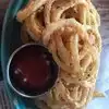 Outside they have picnic tables with service and fire pits with seating, but no service. We were told we could order food at the bar and take it to the fire pit area ourselves. Seemed like they could easily have service at the fire pit area, but it worked. Bar staff was friendly and helpful and waved to us when food was ready to be picked up. We had the fish tacos, which were very good; the crispy chicken sandwich, which was delicious and came with a huge portion of fries and the roasted chicken, which was enormous and came with a house salad and a side of corn. Chicken was juicy, but on the spicy side. A relaxing place to end a busy day of sight seeing.
