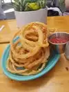 I had high hopes for this place based on reviews and recommendations by locals. However, our experience was less than desirable. We stopped by on a Saturday night around 6PM. They indicated 45-60 minute wait. We were able to find a seat to wait outside with lots of other families. However, upon watching the operation, it became clear just how inefficient they were. There were no less than 5 empty tables at all times, and another 2-3 needing cleaned off. Maybe a staffing issue, maybe inefficient process to get people seated. Once we were seated, it still took forever to get drinks, appetizers, and food. It took about 30 min to get an appetizer and then probably another 15-20 to get our actual meals. The food overall was just mediocre at best. My husband got the chicken, which was a large portion, but just ok. I got the panini which was pretty good. The onion rings were delicious as an appetizer, and came in a large portion. Refills on drinks were slow like everything else. The patio space is nice and was full of furry friends, which we liked, but I’m just not sure I would go back.