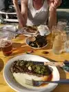We stopped by mid-afternoon, so it was very quiet and slow. Sometimes service is slowest when it's not busy, and that was a little bit of the case. Best thing ordered was the tortilla soup. Have had it many times at other restaurants, and this is the best presentation and best taste I've ever found. We also had kebab and thai steak salad. Both were great. Ate outside on a sunny day- not sure the heaters were necessary! Love the patio setting, even with all the busy begging birds.