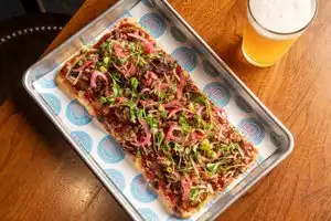 This place has great appetizers. The fried mac and cheese balls are really good. They have "pizza" on the menu buts more like flatbread. The staff could be nicer but overall it's a good place to hang out.