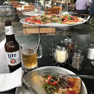 A warm afternoon. Good company and a tasty burger. A good way to finish a conference in Dallas. Really very good staff who looked after us. Everyone was from outside Dallas and they organised taxis for all of us. The owner came over to speak tour group. Made everyone feel at home.