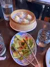 This was my first experience with this chef's restaurants, and it did not disappoint. From the moment I walked in, I was so happy to be there. The server was so kind and friendly and happy to explain anything that needed explaining. But the food really did it. The goat and duck spring rolls were a delicious starter. The potstickers were the most underwhelming dish we tried, but they were still good. The main entree was the Pekan Chicken, and oh my god was it good. The best part for both of us, though, was the char siu bao, which are the steamed barbecue pork buns. I would go back again and again just for those, honestly. Everything was cooked to perfection and the drinks were STRONG. Definitely a fun way to start off an evening in the city.