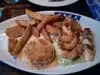We had the 12 oz Cioppino and the Crab Cake Sandwich. Both portions were small though the taste was good. The Cioppino had very little seafood, and the Crab Cake Sandwich cane with wimpy sweet potato fries. The complimentary sourdough bread was hot and had a crispy crust, but it had a sour taste. Pricey with small portions.