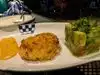 This is a nice restaurant and our second visit. My husband and I shared the crab cake dinner as they are known for the crab cakes, but we were not very hungry that night. As they say, lots of crab in their crab cakes which were good. We also ordered their 'award winning' clam chowder, which was fine. I think our company order a halibut dinner which he liked. Staff was nice and brought us an extra plate. We arrived without reservations on a Friday night. We did have a wait, but it was not extremely long and there is a sitting area outside of the restaurant where you can wait.