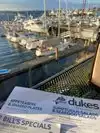 My wife and I visited Seattle in the fall last year and found Dukes just a short walk along Fairview from our hotel. It was busy but were shown straight to an inside table (there are external tables available too). Despite being busy the staff were friendly and ultra-effecient. If you are going to Dukes you must have sea food (why would you have a burger?) which is the very best plus try the excellent chowder for an extra wow factor! We enjoyed our meals and drinks (good IPA large beers) and walked back along the lakeside to our hotel. A great memorable first evening in Seattle.