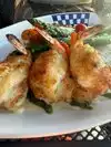Ask to sit outside - best place to enjoy the food. We had a bottle of Up River White sauvignon blanc ($48). Excellent. Coco Loco prawns ($17.90). Sriracha North cod ($28.90) - Holy Halibut macadamia ($44.90) and Pistachhio halibut ($42.90).