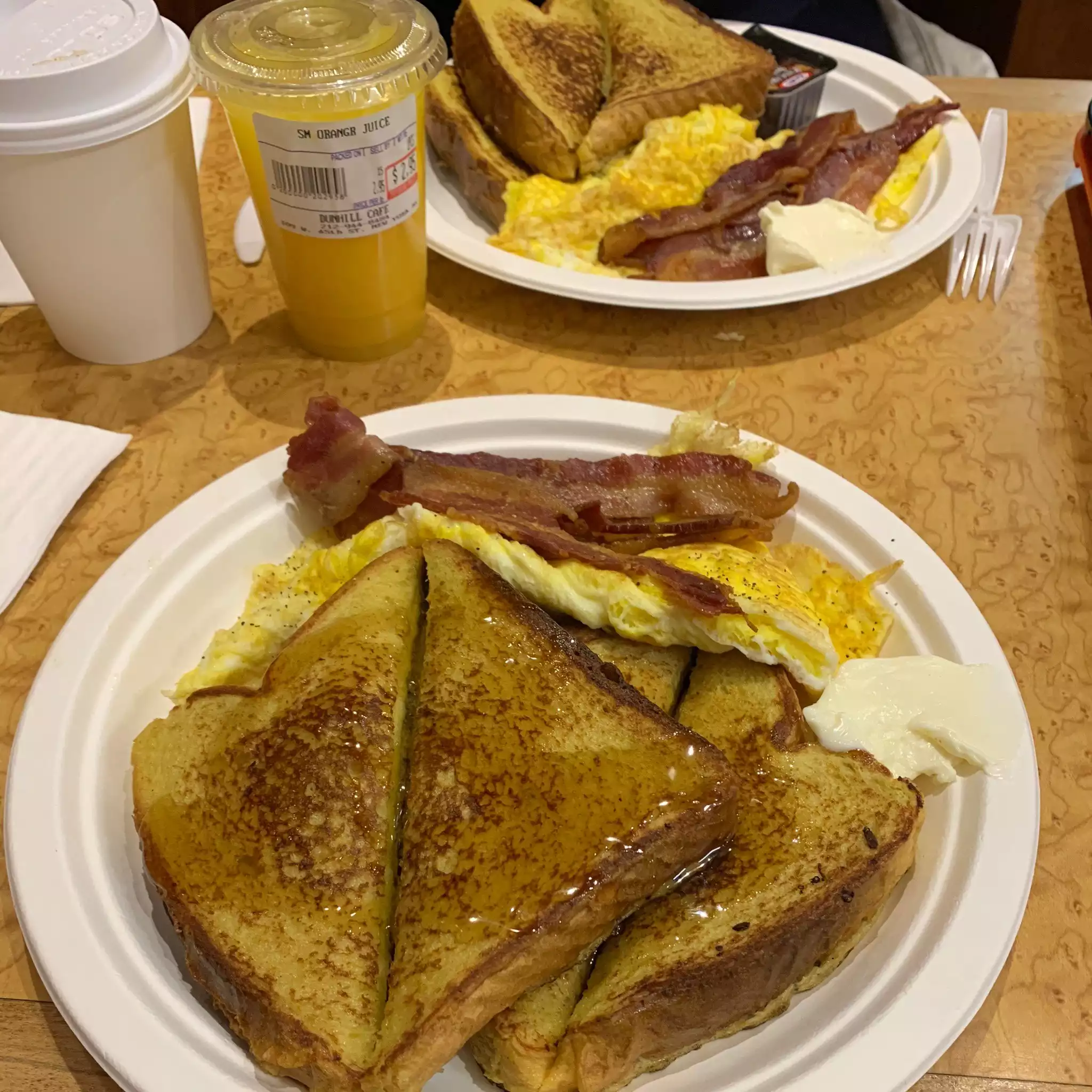 We had breakfast here every morning during our week long stay at the hotel next door (Hotel St James). Even when we didn't have time to eat it at the restaurant we asked for it as a takeaway. We didn't even look for another breakfast place as we loved Dunhills. The bagels were delicious and the fillings were generous. The French toast was also very good. The staff were very friendly. There was always a steady stream of locals getting breakfast on the way to work and it was interesting watching the cooks. We will definitely go back to this restaurant if we visit New York again.
