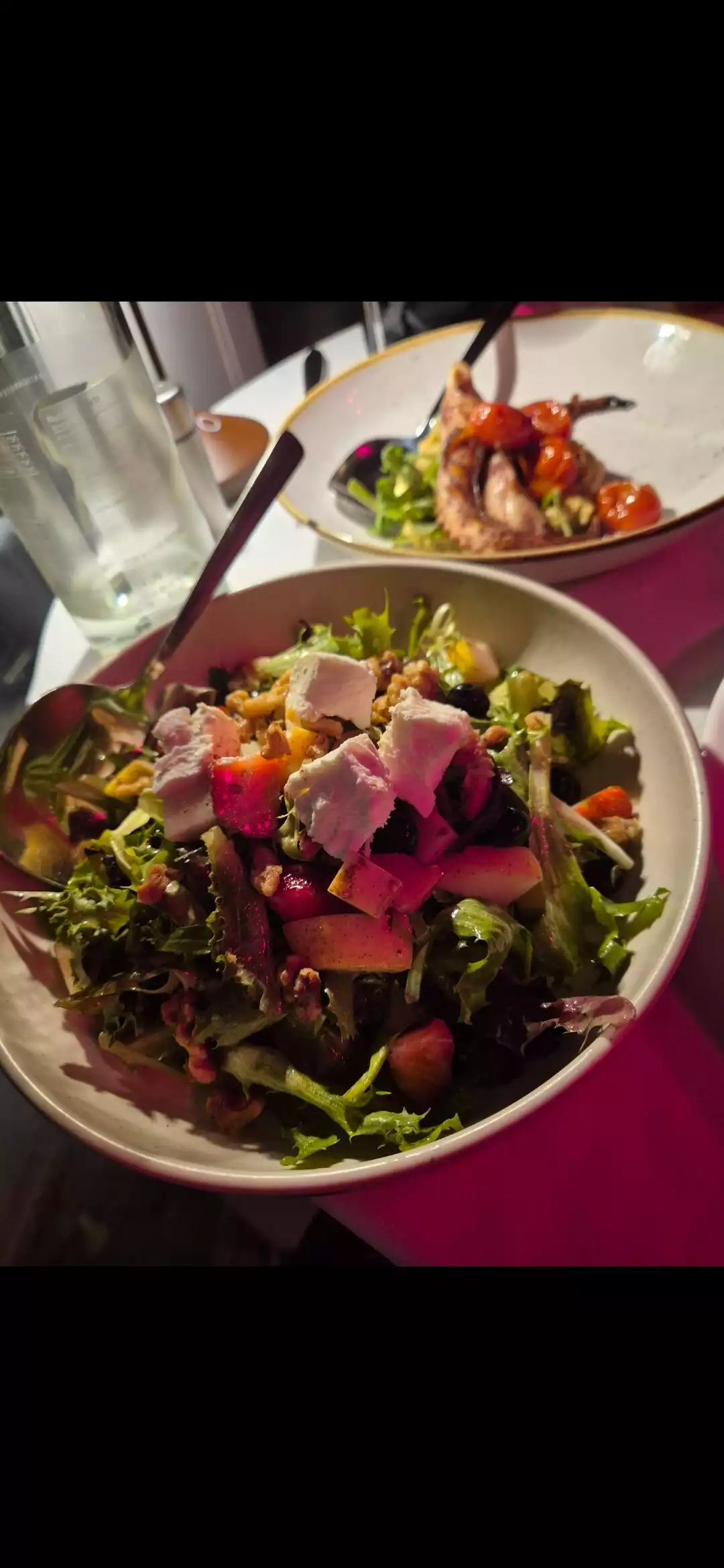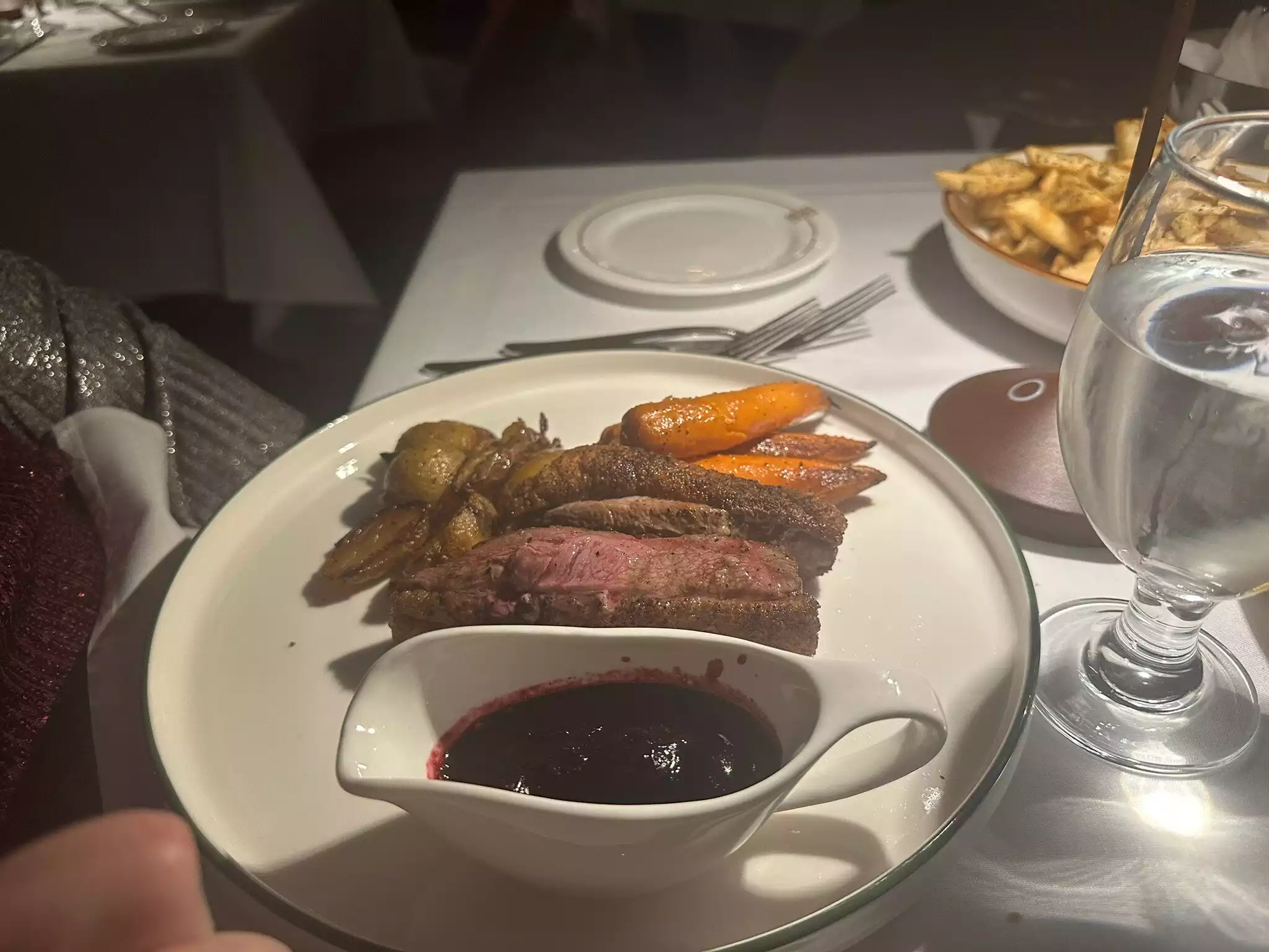 The meal felt disappointingly like something you'd expect from a microwave dinner. The meatballs and sauce were cooked seperatley tho served together and was luke warm with a texture that screamed processed rather than freshly prepared. The bolognese was no better—reminiscent of a generic supermarket microwave meal, lacking the richness and depth you'd expect. The dumpling salad, though, had potential, but the addition of blueberries and strawberries seemed out of place and unnecessary, detracting from the dish’s balance. As for the steak, it felt as if it had been pre-cooked, left to sit, and then reheated in a cold pan, resulting in a texture that was more like a stew than a proper steak. It was a disappointing experience overall.