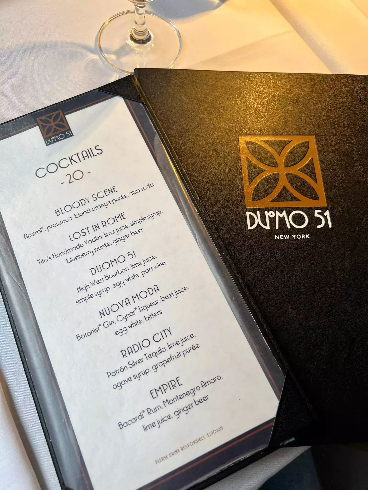 On the 7th floor of the Double Tree Hilton Midtown is Duomo 51, overlooking Rockefeller Center and Saint Patrick, dine at this restaurant 3 times taking advantage of the Christmas Days overlooking the illuminated Cathedral and the Arbo of Rockefeller Center on. Magic. pleasant atmosphere, excellent gastronomy and attention, the masterful squid and grilled octopus, the cocktails of all my taste. Congratulations.