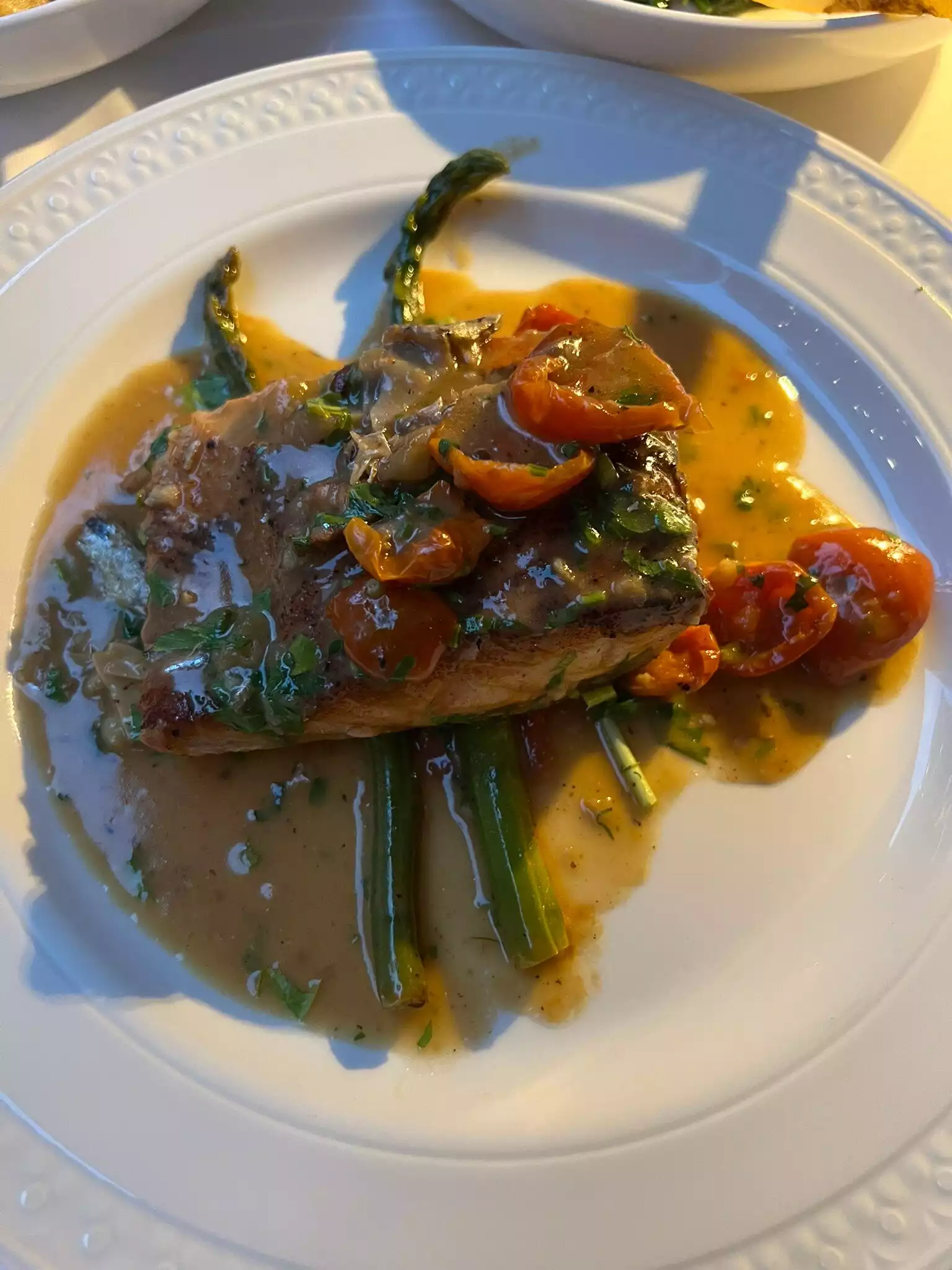 My ribeye was excellent and a perfect medium cook. Nice portion of asparagus but at an additional price. Should come with, at least, one side dish for the amount I paid for the steak. My wife loved the gnocchi/shrimp dinner, even as it was her first time eating gnocchi’s with a garlic sauce.