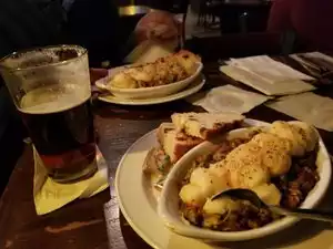 I stopped in Durty Nelly's just to grab a few drinks. I came in the afternoon after New Years and there was hardly anyone here. I enjoyed the old Irish pub feel here, it was dark and cozy inside. Each table has peanuts which can get messy! Since it was just us, the service was quick. I was happy just to drink a fresh pint of Guinness and sit and chat with friends for a few hours. They do have food here, and a decent selection of traditional beers. I can see it getting busy here sometimes, but I had a great time, Cheers!