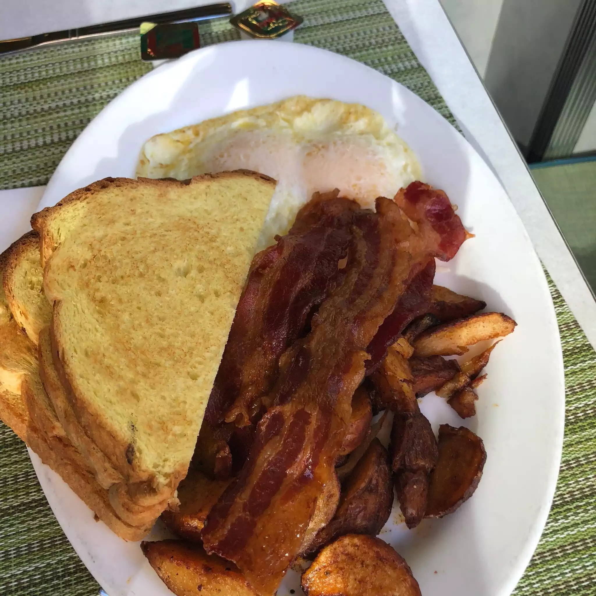 Good menu. Very friendly staff. Had a good brunch. French toast. Bacon and drink. Prices are not cheap but food and service were good. We ordered dinner from them tonight. Hamburgers were really good and nice size. Side dishes were very good. Again costs were not inexpensive. Their breakfast menu is large with many different choices. Fast delivery if needed.