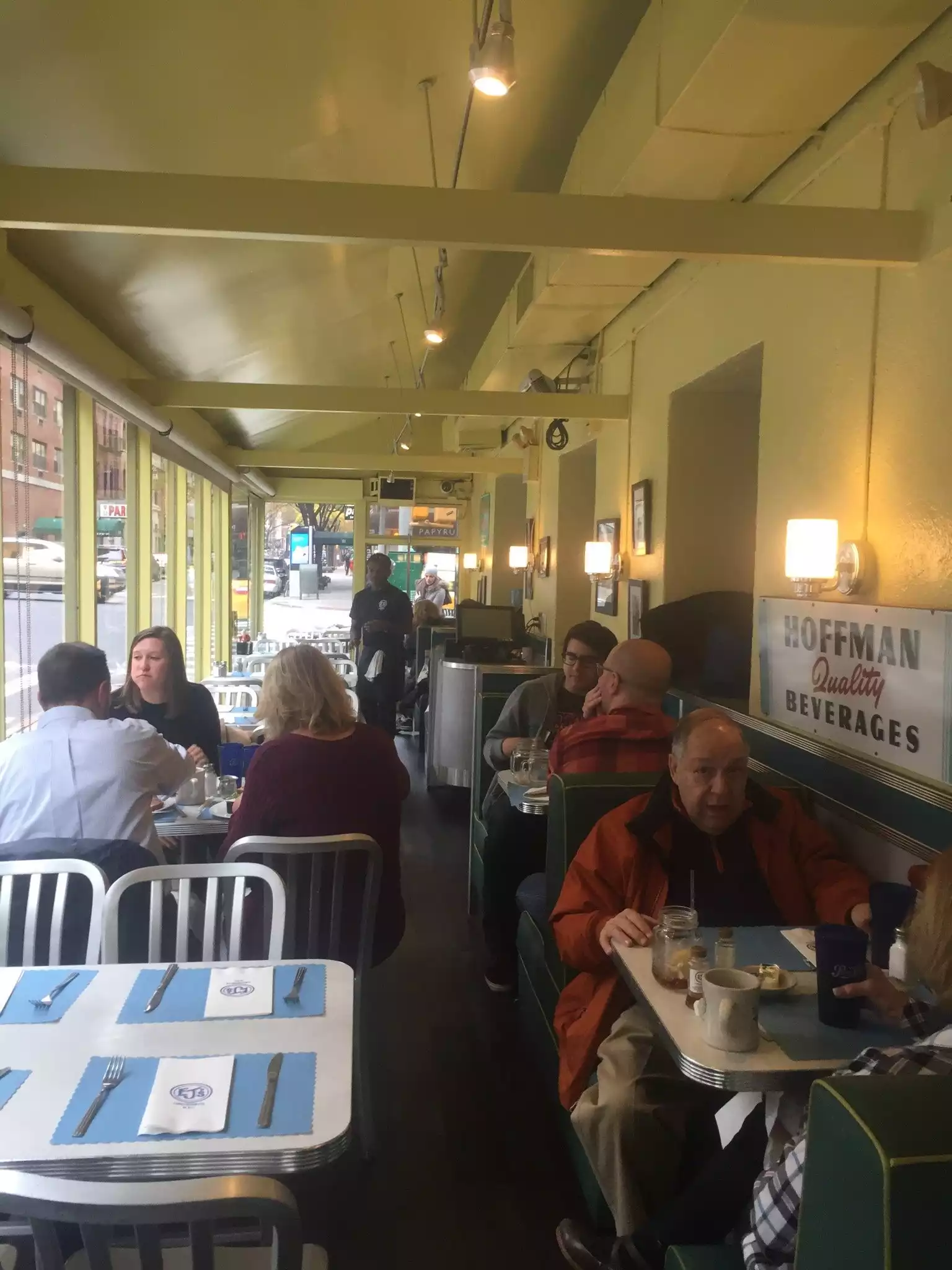 Being a very popular place among locals it is a privilege to eat here as a tourist when visiting friends in NYC. The typical american diner food is great and the ambience is busy but friendly. You leve happy and filled up...!