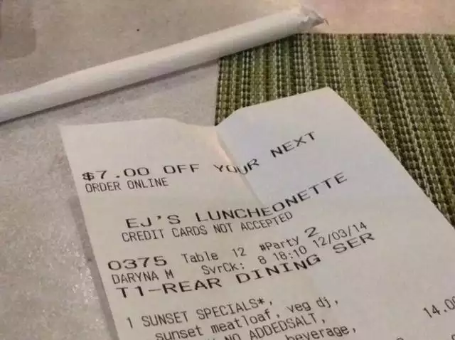 My family and I wanted to try EJ’s because we read some good reviews and we love diners. We had some bacon cheeseburgers and California ranch wraps and both were not worth what we paid for. The burgers tasted like egg grease and the wraps were ok. Service was friendly but only come back to check if we were ready for the check. We wouldn’t recommend it!