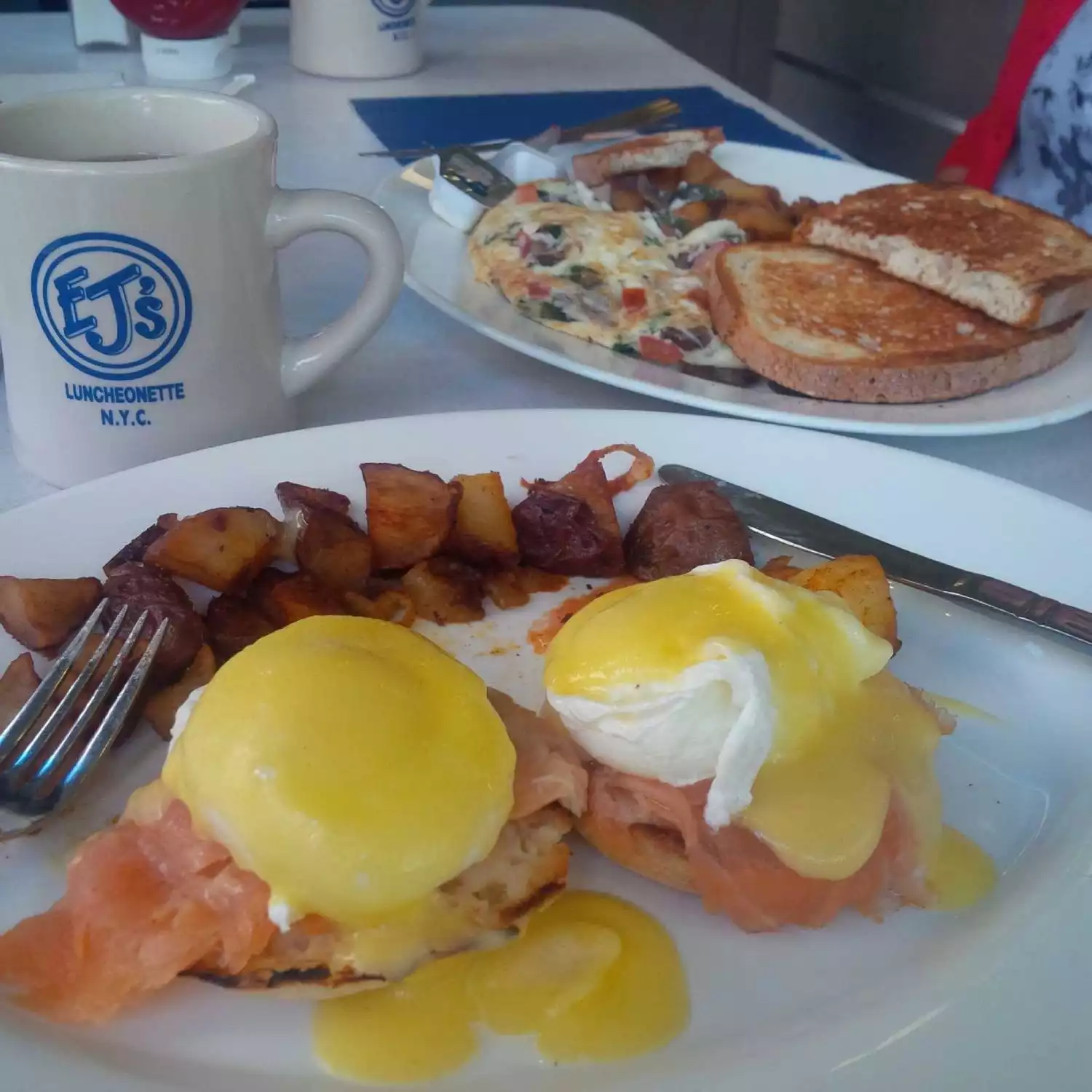 Following a recent trip to NYC, my partner and I had pre planned all of our meals, however we came across EJ's in the top ten in New York guide book, and i'm so glad we did. Eating with the locals, it was amazing, I had scrambled eggs with sausage and toast, the coffee was plentiful, and the service was wonderful. We visited twice during our stay, we thought is was that good.