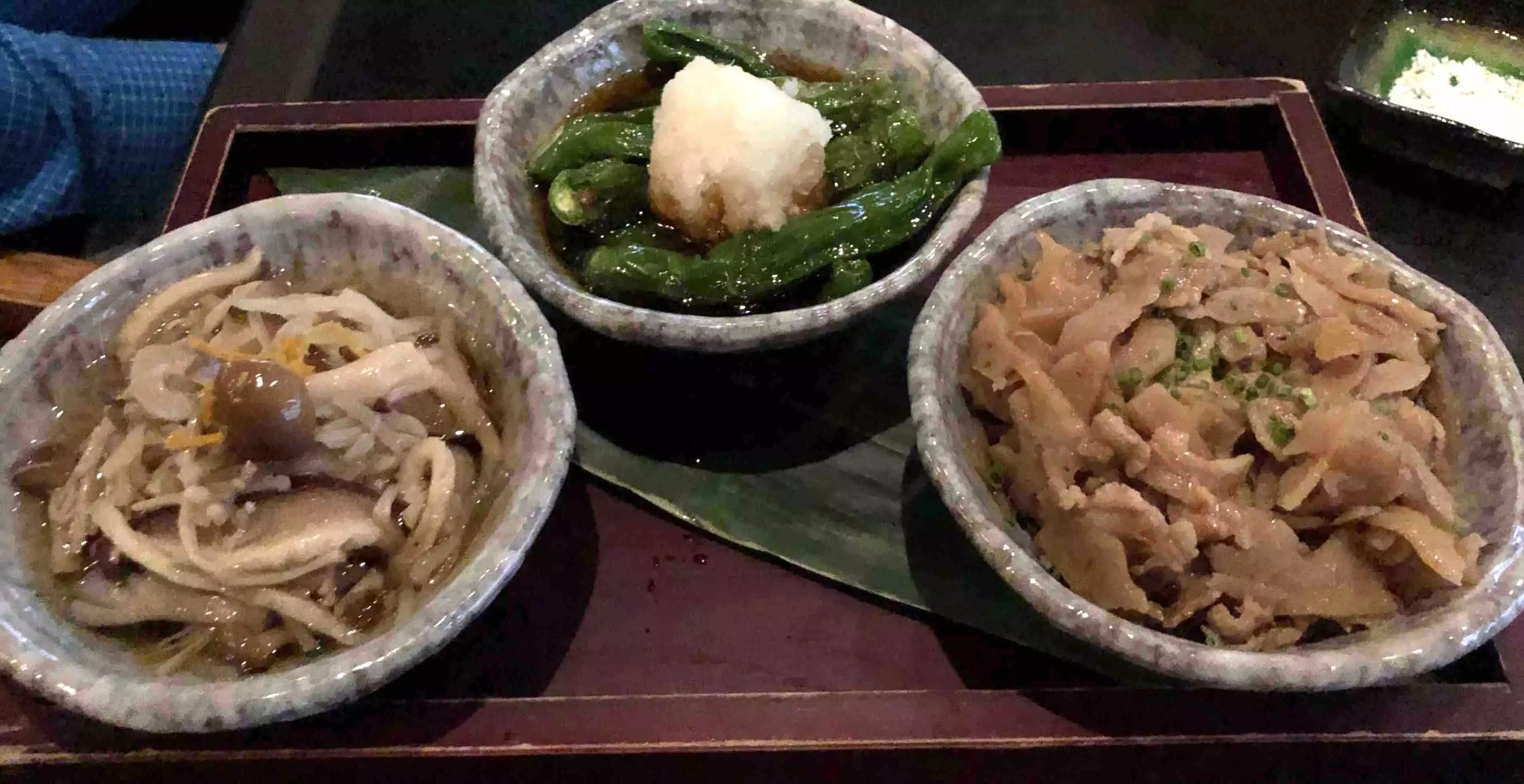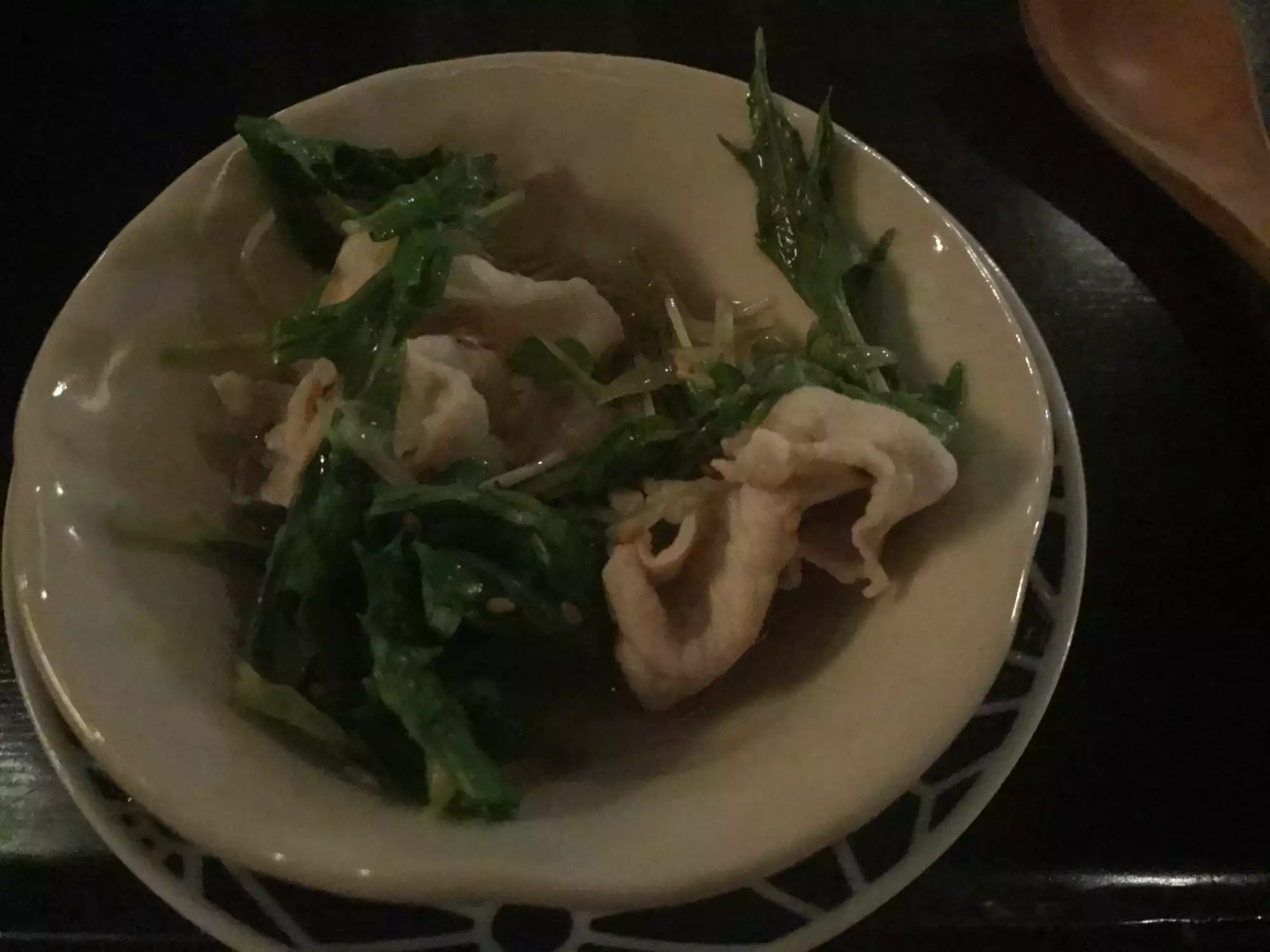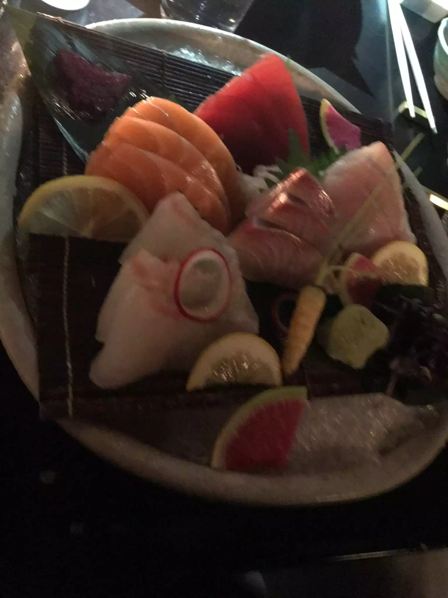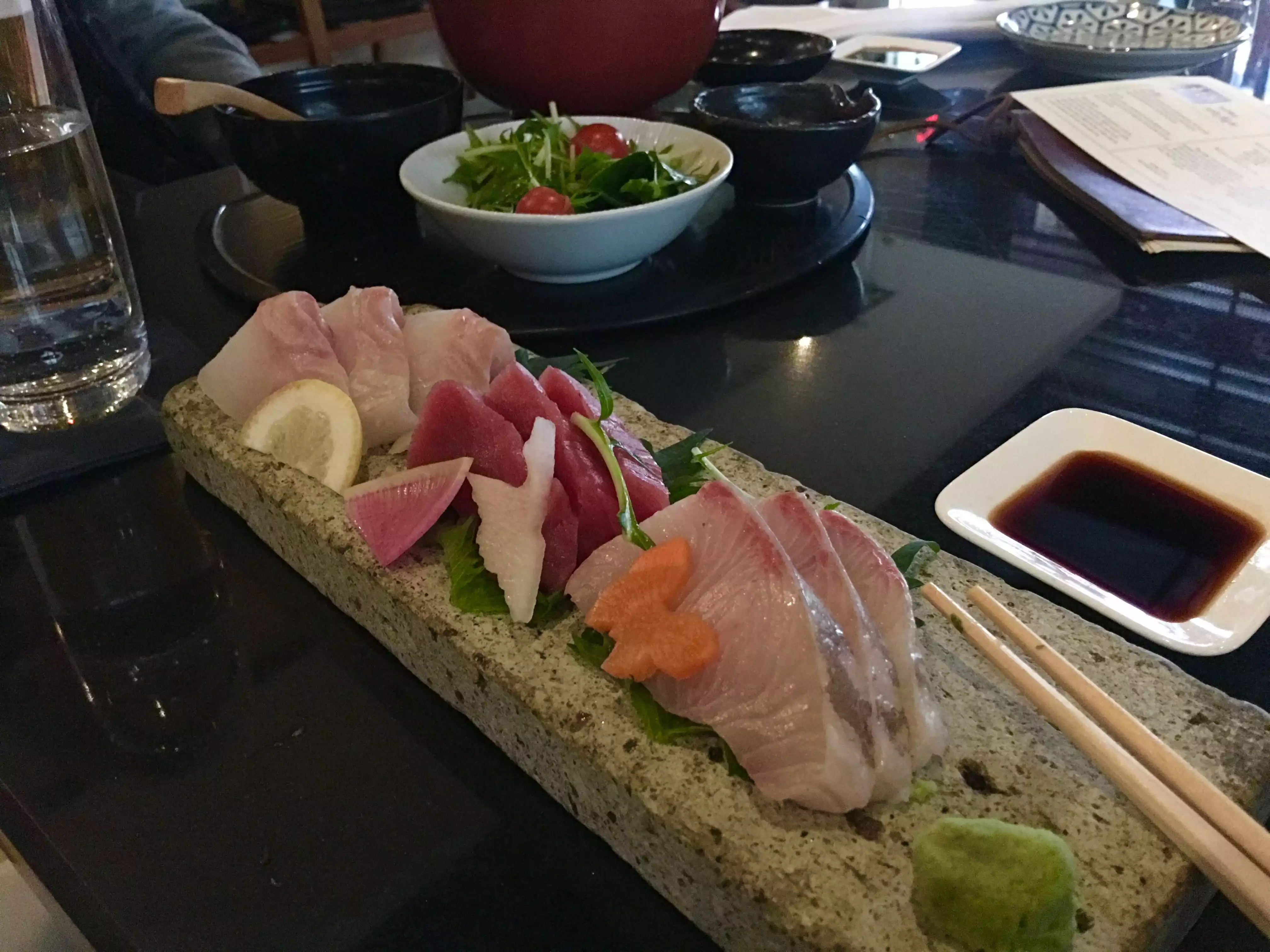 We were having a later dinner on a weeknight. We ordered a variety of rolls, a salad and sashimi. I tasted a bit of it all. Mind you, this is supposed to be an unusually good Michelin rated restaurant. I was shocked at the blandness of the greens and the mediocrity of the fish. For the price, and overall, it was a huge disappointment.