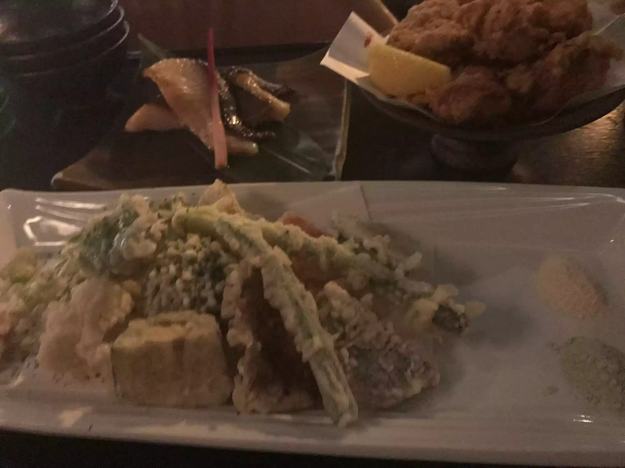 My second visit. A menu with lots of inventive japanese dishes as well as classic offerings. Good saké, not cheap. Good service, efficient. LIGHTING IN THE FRONT ROOM WAY TOO DIM! Sorry for the caps but really, no human can read menus in that light. Please, please, fix this!! Otherwise, the fried chicken was just ok, not well seasoned. th hamachi fish collar was not particularly generous or good, and I know this dish well.