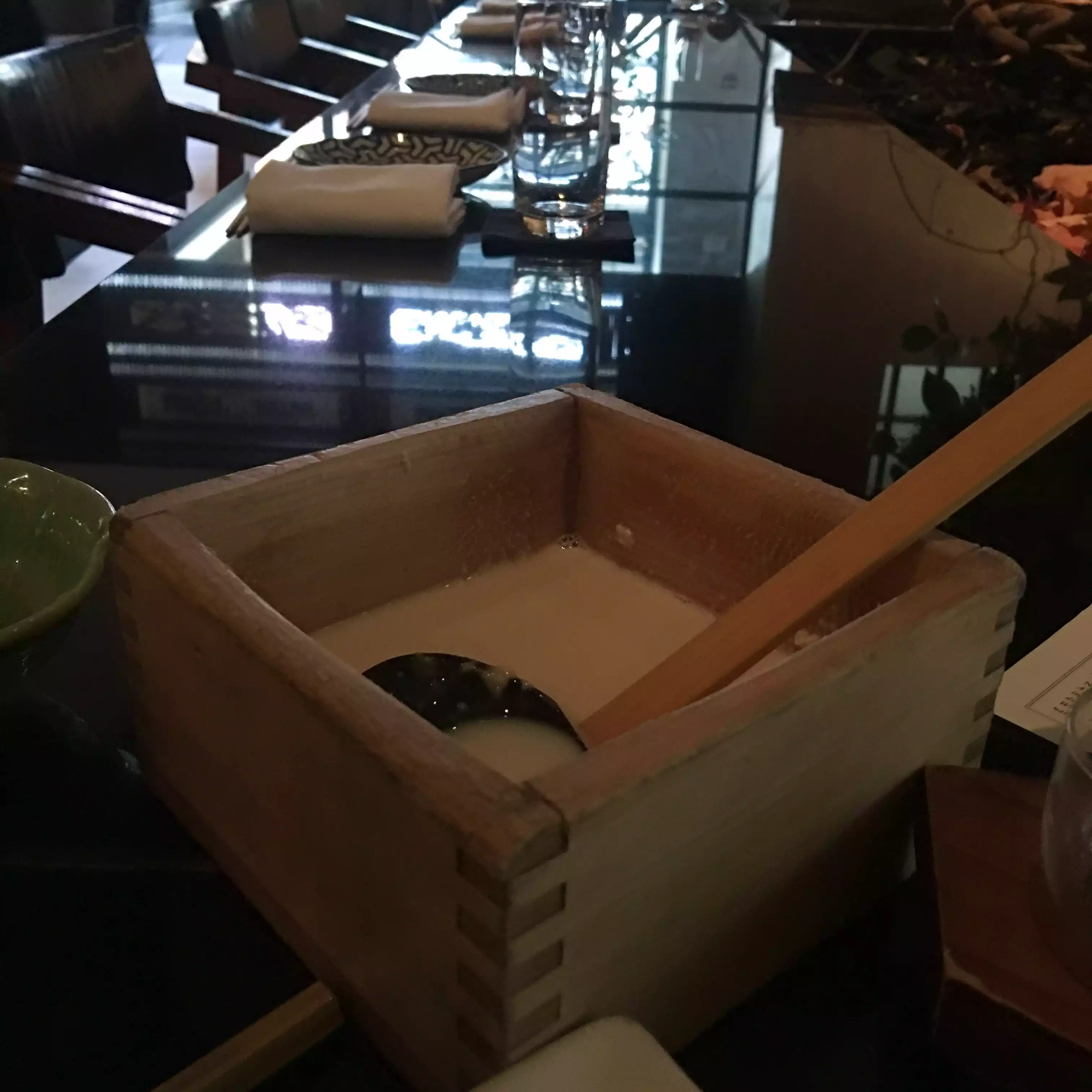 We enjoyed every single dish last night, the fresh tofu made hourly, the asari clams, the O-Banzai kyoto style appetizers, the Karei Age fried flounder with ponzu sauce. The desserts, too. Our very un usual shochu (a 25 percent alcohol spirit served on the rocks) was tasty but I would not especially recommend it. (Gyokuro) There are many many sakés to choose from. Service very professional and kind. We came at 630 thus we the first clients and everything was served very very fast, not necessary, but we understand. Very attractive decor. A few private rooms available. 500 for 6 people witgh the expensive bottle of shochu (74) tax and tip